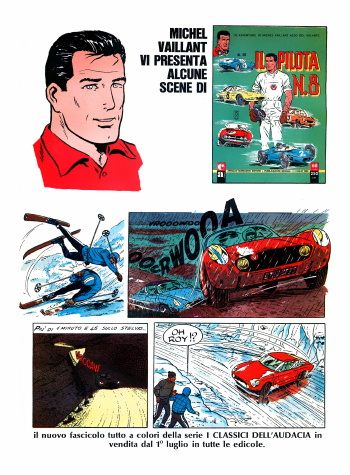 Nel 1970 nella collana Albi Ardimento di Crespi viene riproposta la pubblicazione del primo album della saga di Michel Vaillant "La grande sfida", che era già stato pubblicato nei Classici dell'Audacia di Mondadori nel 1963.Sul "Corriere dei Piccoli" appare questa pubblicità.
