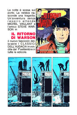 In questo esempio (Albo della Rosa n° 565 con Paperino), inviatoci da Mauro Giordani, troviamo la pubblicità de "Il ritorno di Warson" ("Le retour de Steve Warson" - "Il ritorno di Steve Warson").