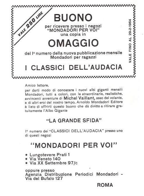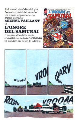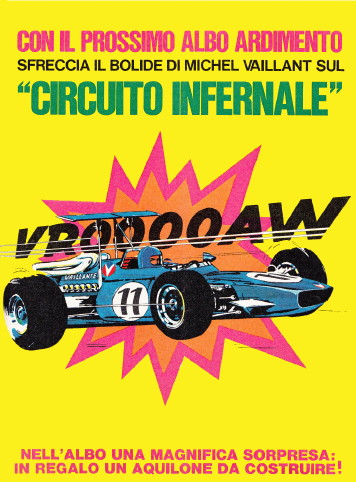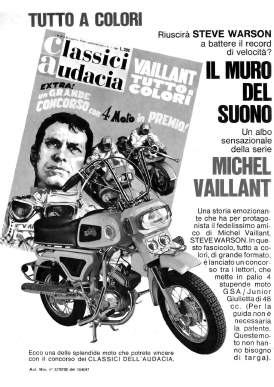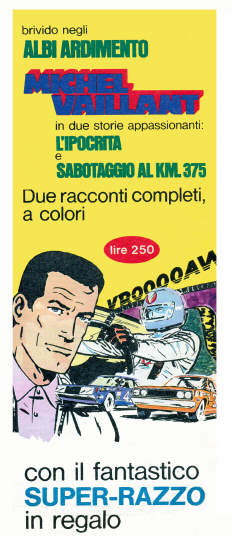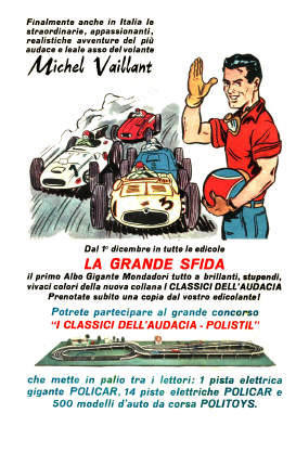 Nel 1970 nella collana Albi Ardimento di Crespi viene riproposta la pubblicazione del primo album della saga di Michel Vaillant "La grande sfida", che era già stato pubblicato nei Classici dell'Audacia di Mondadori nel 1963.Sul "Corriere dei Piccoli" appare questa pubblicità.