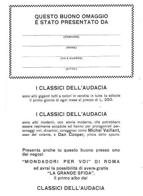 erede dei Classici dell'Audacia) e che vedeva, tra i